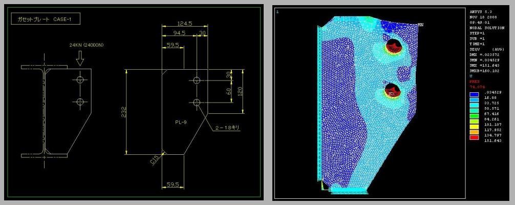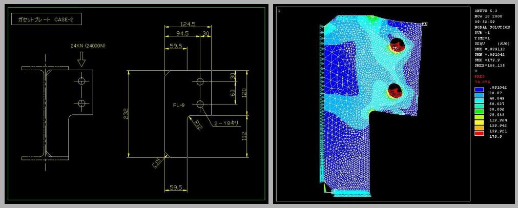 | 標準的なガセットプレートの応力分布 (2) |