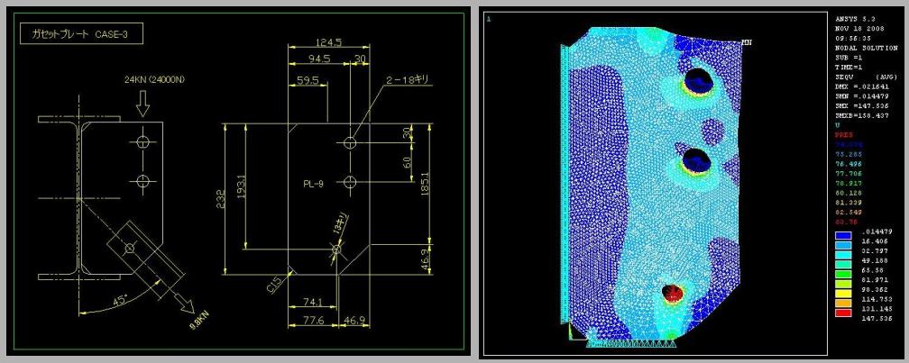 | 標準的なガセットプレートの応力分布 (3) |