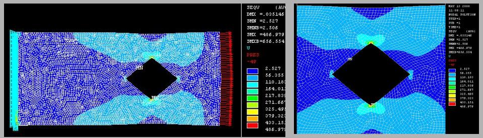 | 平板に四角形穴がある場合 穴の対角の1辺=