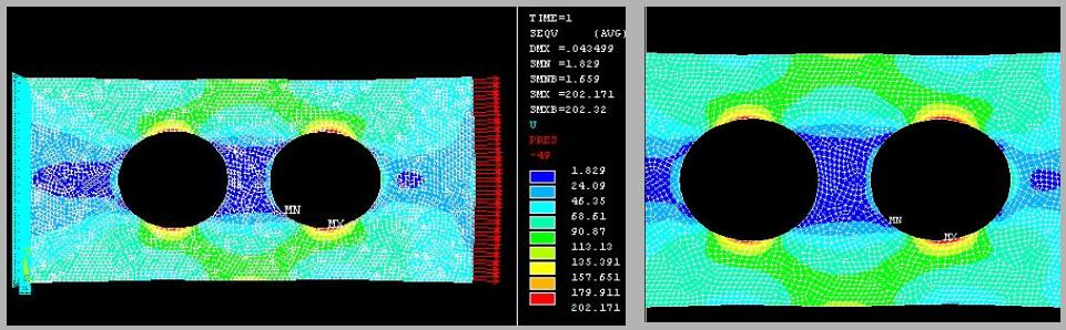 | 平板に二つの円形穴が連続する場合 穴直径=